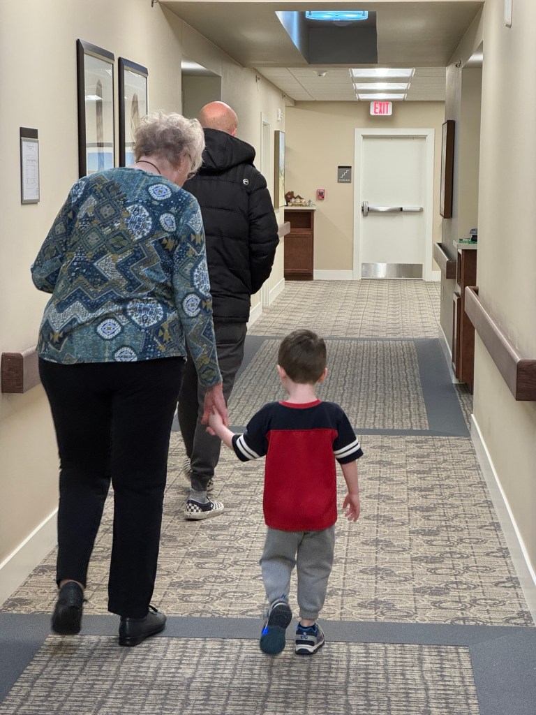 I have resolved that I do indeed live a double life. In being supportive of my mom I have resolved that I am being authentic and true to my own self. I am grateful that I have done a lot of work – in therapy and on my own to get to this place where I am able to do it. Going back to a place where there are numerous occasions for triggering events though has been a challenge. It is always a road with twists, turns and a lot of sadness when I am forced to revisit painful places. At the same time it is a road of beauty and deepening gladness. My mom’s joy with my grandson was exquisite joy. Comforting joy. It is so worth it.